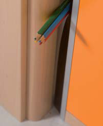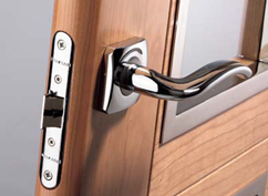 Ocultan todo el sistema de giro e introducen nuevos cantos de hoja y batientes redondeados que eliminan el hueco lateral que se crea en los sistemas convencionales al abrir la hoja, con lo que se evita la introducción de los dedos y con ellos los graves accidentes que se suelen producir debido al efecto guillotina con aristas vivas.